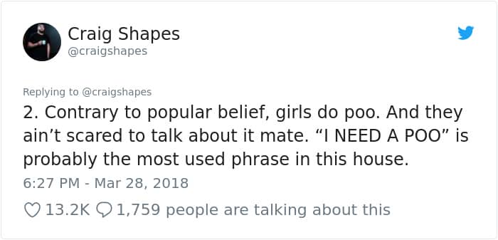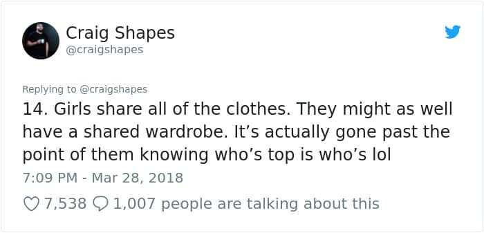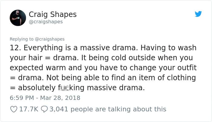Scroll down below to check out Craig’s lessons from living with women below, male or female, you are bound to relate to at least a few of them!
