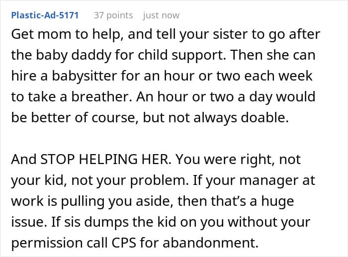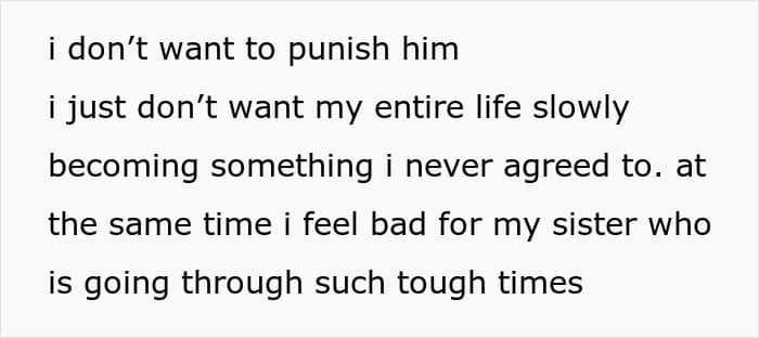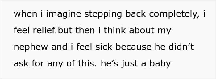 And then, after the baby was born, the original poster was constantly by her side, trying to make her sister’s difficult life easier. However, it seems she gradually began to take her older sister’s presence for granted. To the point that she even stopped asking for her consent for babysitting and everything related.