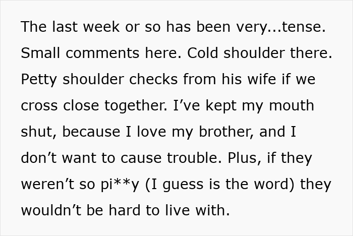 This wasn’t a small favor, either. She let her brother and his wife move into her home for free, which is a huge gesture. So when that generosity is met with entitlement instead of appreciation, it can leave a deep emotional sting.