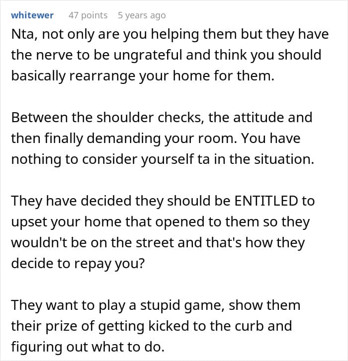 So when this Redditor’s brother and his wife could no longer afford their home, she opened her doors and let them move in to live with her for free. But instead of appreciating the help, they threw a fit over the size of the room they were given and followed it up with a stream of rude remarks.