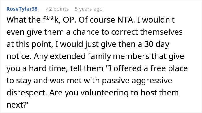 In the end, it’s reassuring to see that the author of the story chose to speak up about how her houseguests were treating her family and began considering asking them to move out, despite the pressure coming from other relatives. It’s a reminder that while helping others is important, it should never come at the expense of our own peace of mind.