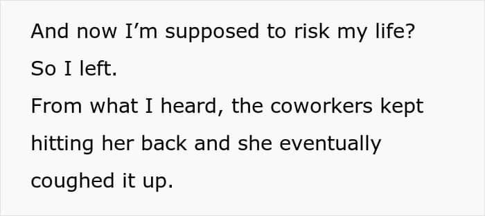 In a moment of unexpected karma, the coworker started to choke on the very food she had flaunted moments before