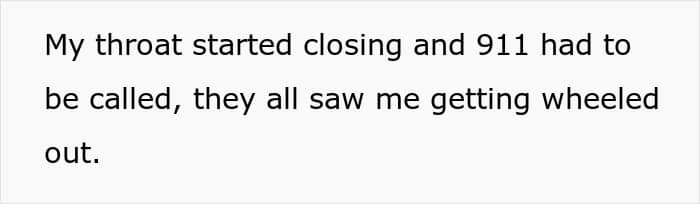He later found out that Linda was fine; she had coughed up the food. But now he’s the office pariah, a monster who “just stood there and walked out” while a coworker was choking. People are suggesting he could have just used his EpiPen “like it’s some kind of undo button.” He’s wrestling with a crushing guilt, wondering if he was ajerk for choosing his own life over the life of his tormentor.