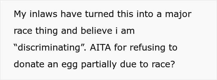 And so, she declined the sister-in-law’s request even though it didn’t sit well with her in-laws who accused her of discriminations. The OP didn’t deny that a partial reason for her refusal was due to race, leaving her wondering if she was wrong for that.