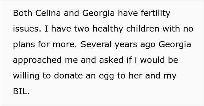 Today’s Original Poster (OP) was faced with an an incredibly difficult choice on whether to donate her eggs to one sister-in-law, and later, whether to do the same for another. Her final decision, however, didn’t sit too well with her in-laws and left her wondering if she was the bad guy.