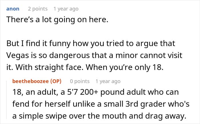 The OP expressed concerns that her parents didn’t consider how dangerous Las Vegas can be for a third grader. And her concerns are understandable; they don’t call Vegas the Sin City for no reason.