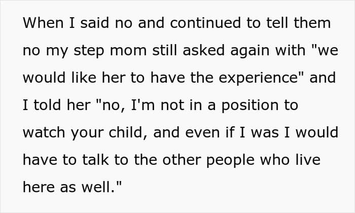 Sometimes, they might ask family members to babysit, but it can be difficult to convince them. This teen, for example, refused to babysit her 3rd-grade sister while her parents visited Las Vegas and shared her story online. Although many people agreed that she’s free to say ‘no,’ her reasoning was confusing to most.