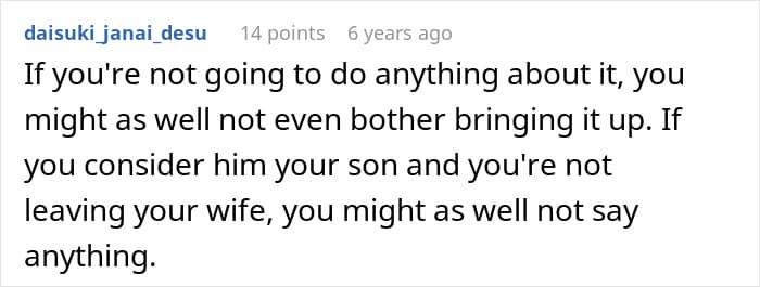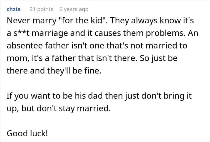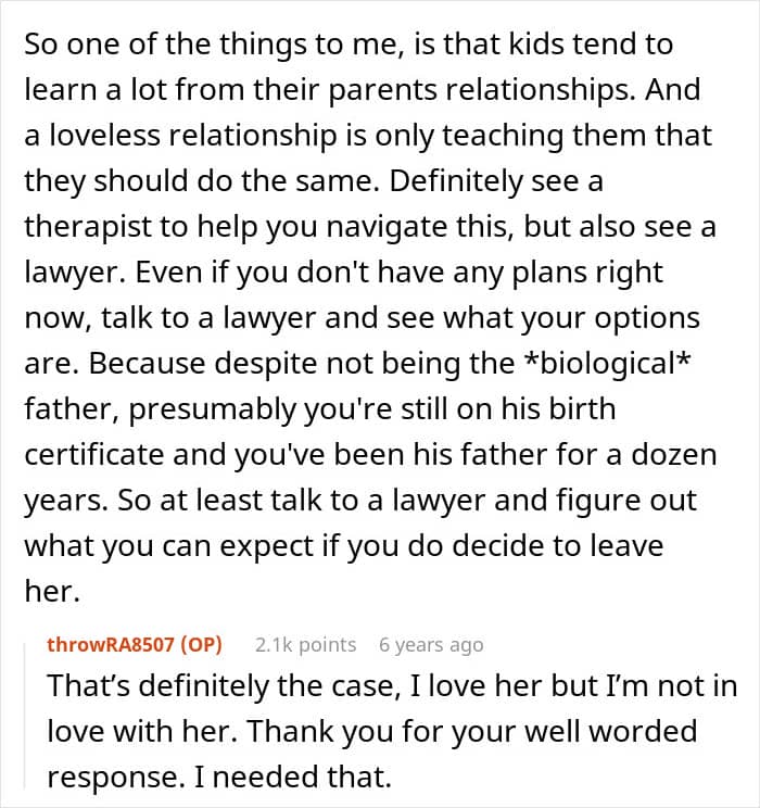 People in the comments showed support for the guy and also questioned whether he should stay in a toxic marriage because of a child