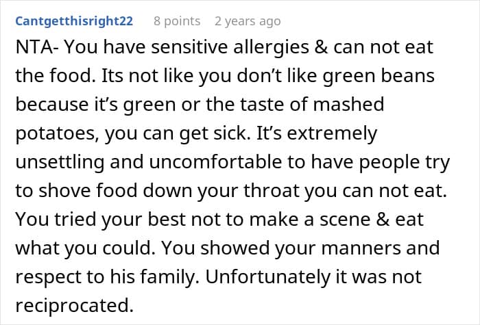 Food can certainly be one of the most exciting aspects of the holiday season. But indulging can be a bit more complicated for those of us with food allergies. After one woman received judgment from her in-laws for sticking to only safe foods on Christmas, she reached out to Reddit for advice. Below, you’ll find the full story of how she managed to insult her mother-in-law, as well as some of the replies readers left her.
