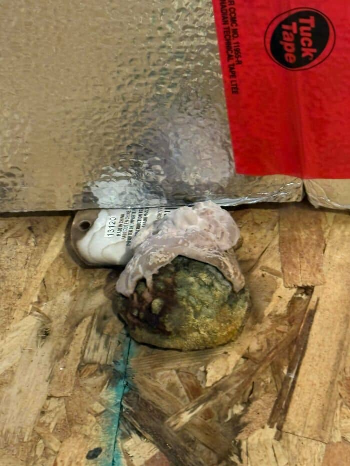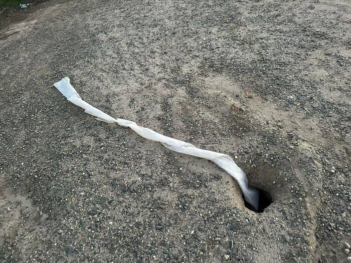 Passing by a canal pass in a neighborhood and noticed bubble wrap going into a burrow hole. I have no clue what this means.