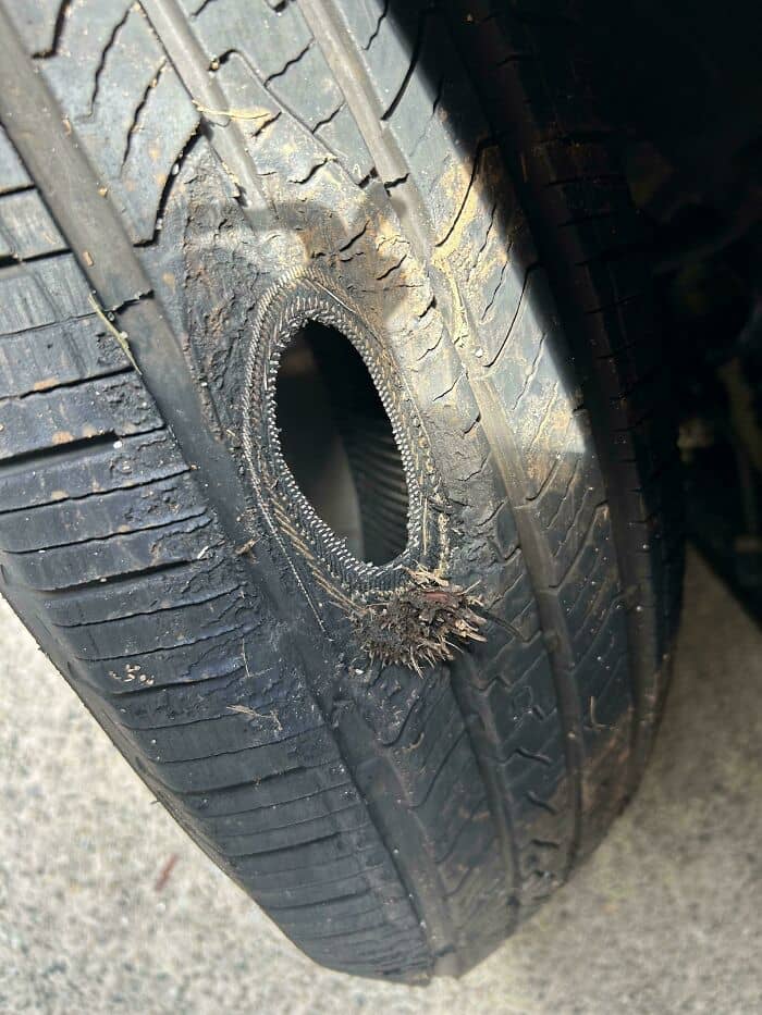 Heat softens asphalt, then a heavy vehicle makes a weird move.