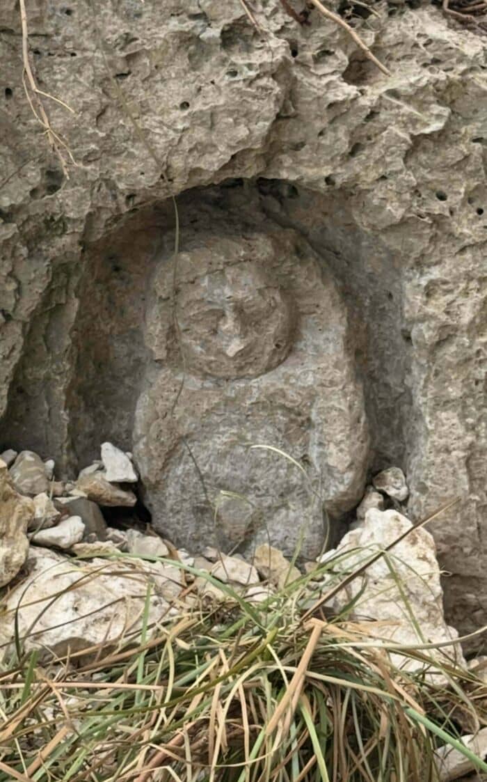 I don’t think it’s ancient. I think someone carved it in recent history; however, it might be worth getting your local university’s history/archeology department to take a look at photos and make a determination as to whether it is archeologically significant.