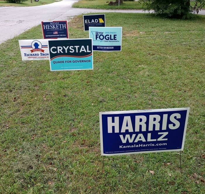 Planting a placard in your front garden advertising your political preference.
