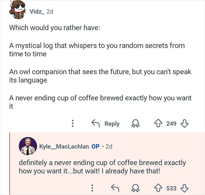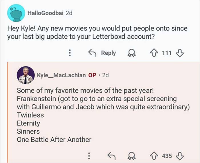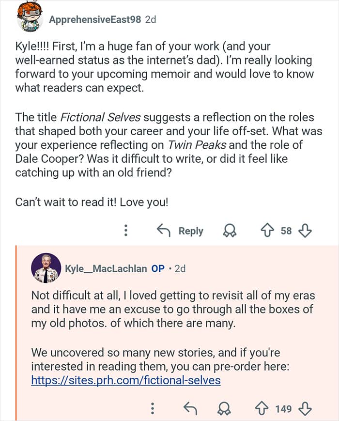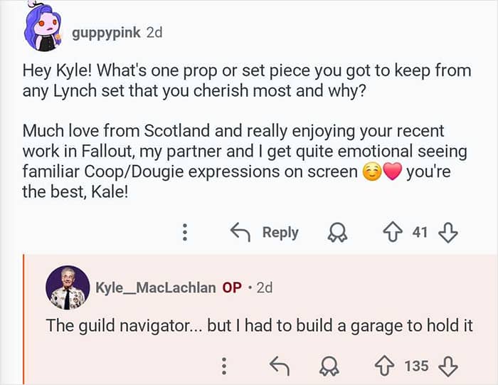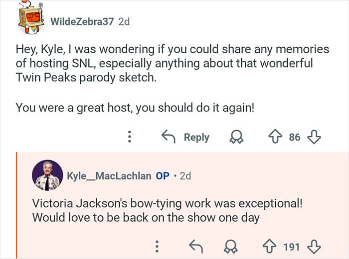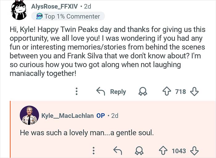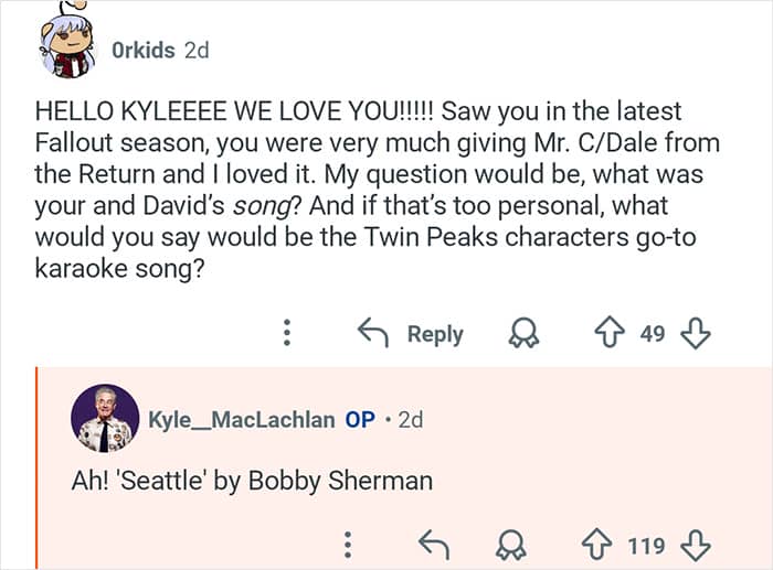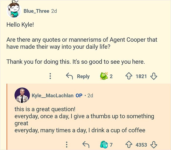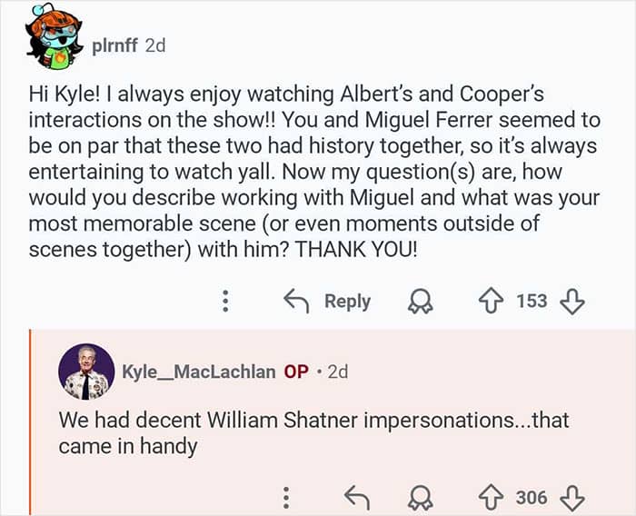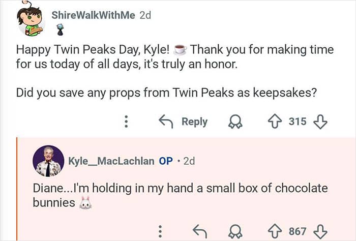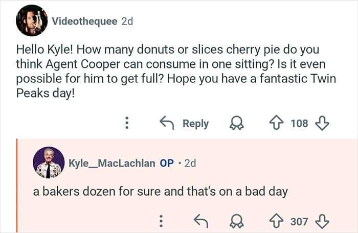 Twin Peaks star Kyle MacLachlan hosted an “Ask Me Anything” where he responded to fans’ burning questions