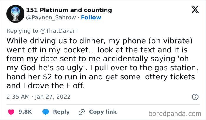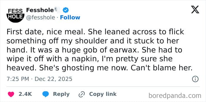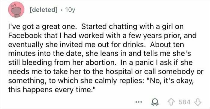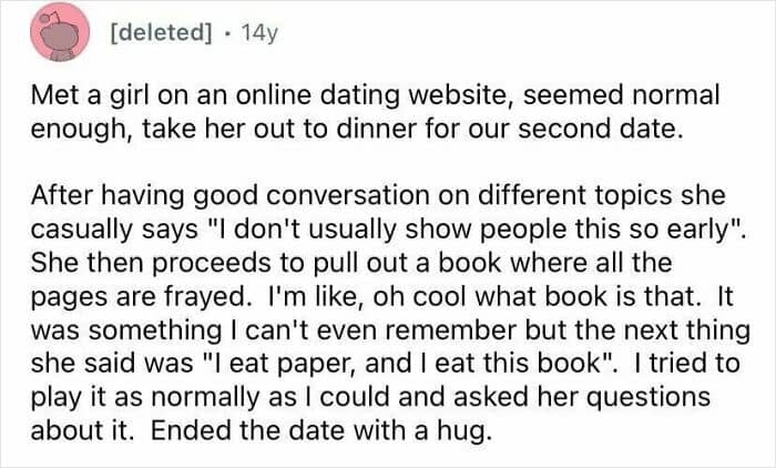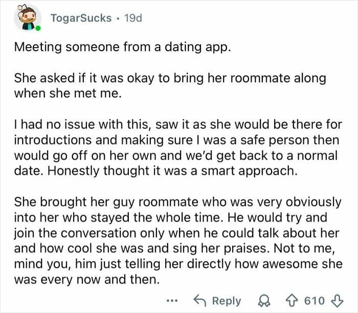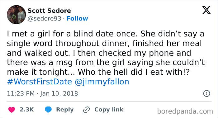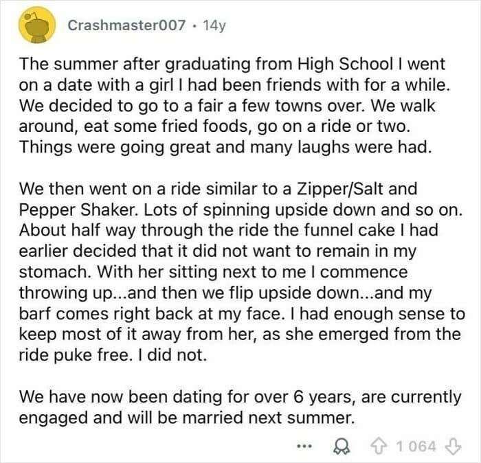 We has curated this list of the biggest dating disasters and awkward fails to show you just how bad things can get. Scroll down to check out these people’s stories, but be warned, some of them come with a big side-order of secondhand embarrassment. It’s enough to make you glad that you’re already in a relationship or to swear off dating altogether.