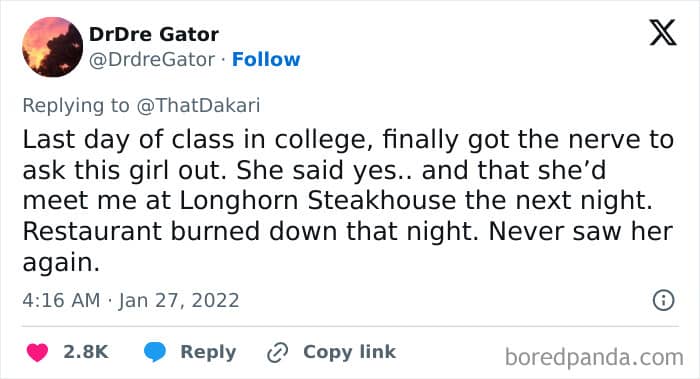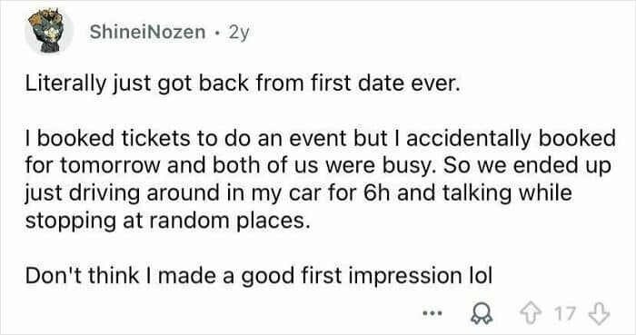 On the flip side, what’s the best date you’ve ever had? If you’d like to share some of your experiences, we’ll be waiting to read them in the comments at the bottom of this list.