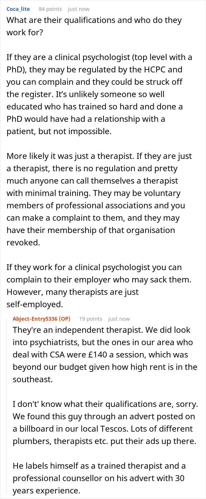 The internet was horrified, calling the therapist a ‘predator’ and urging the man to report him to every possible board