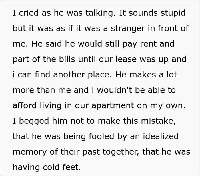 The man expressed deep regret, leaving his former girlfriend in utter confusion