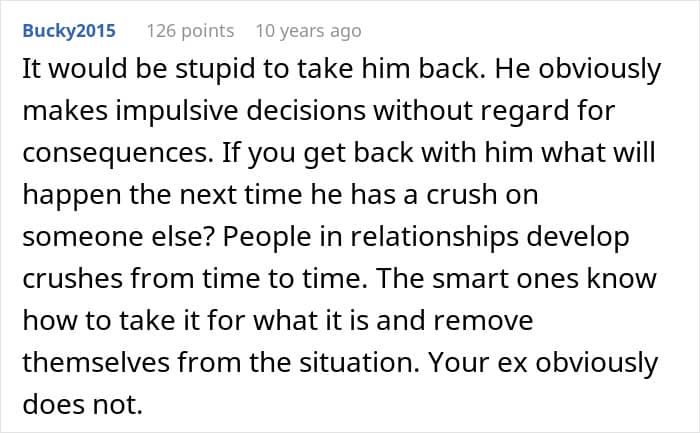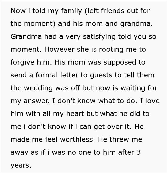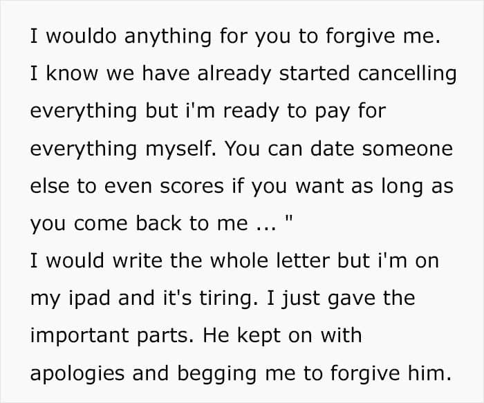 However, he eventually realized his mistake and came crawling back to the woman he was about to marry.