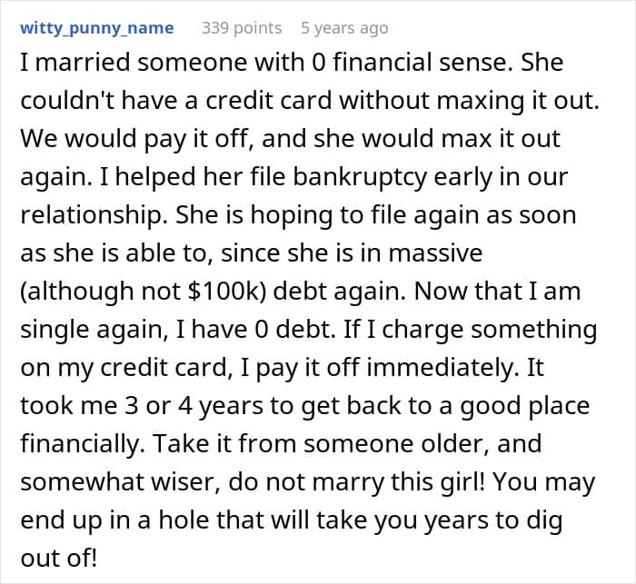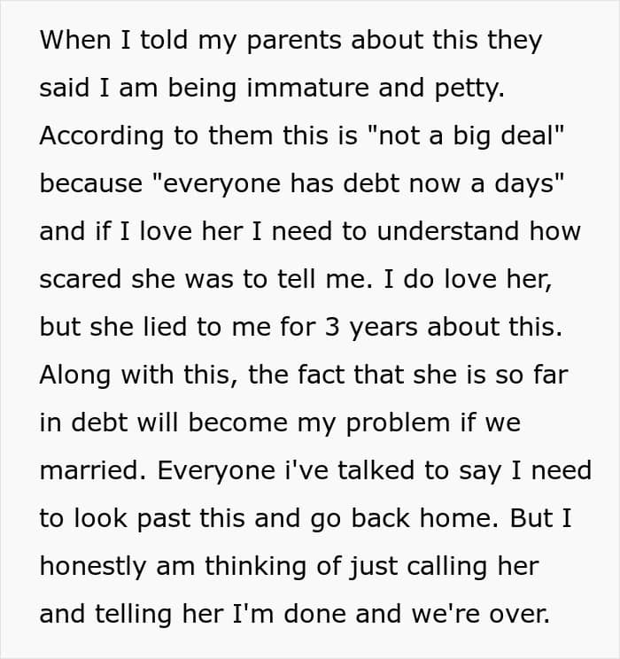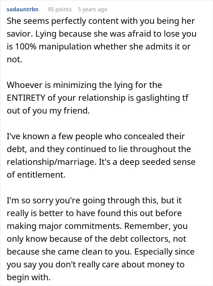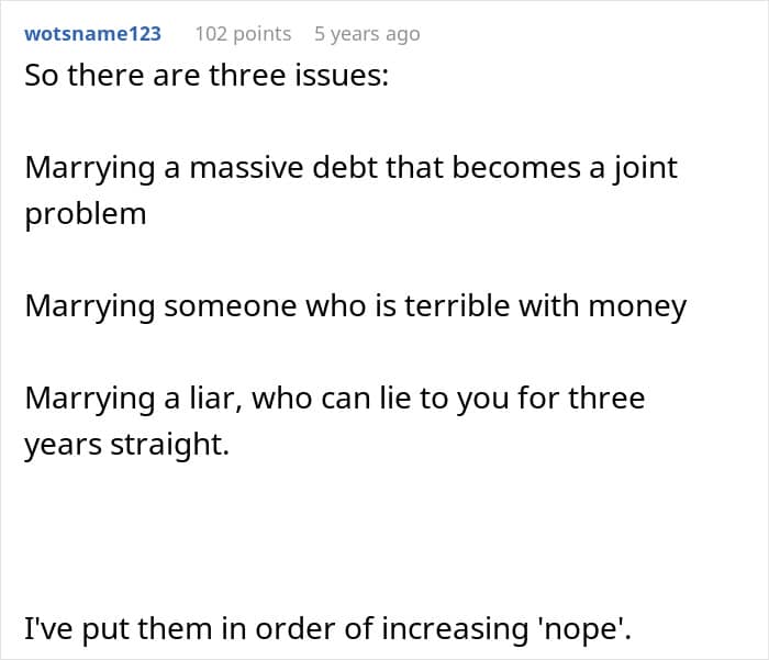 RELATED:A man said his fiancée had hidden a huge amount of debt from him