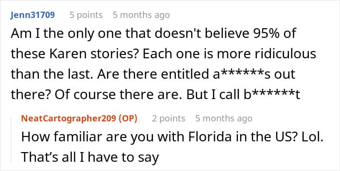 He added that the lady’s actions really caught him by surprise. “I did not think there were people like this. Then again, after living in Florida, more and more stories appear on the news that are just baffling to me,” he shared.