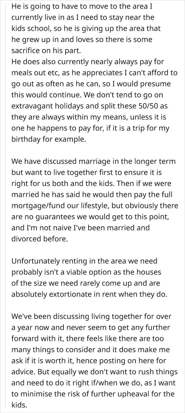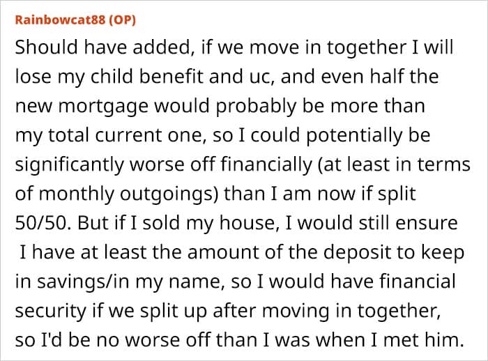 A netizen decided to turn to the internet for advice when she was considering moving in with her partner. He was considerably better off, but still insisted that they split the bills 50/50. At the same time, the woman would probably have to sell their house to make it work. So people online decided to weigh in and give some advice.