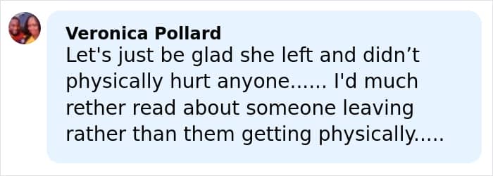 “She made a choice and everyone is still alive and well. Don’t know what ‘charges’ could ever be filed on a person who walks away from their situation,” a reader wrote.
