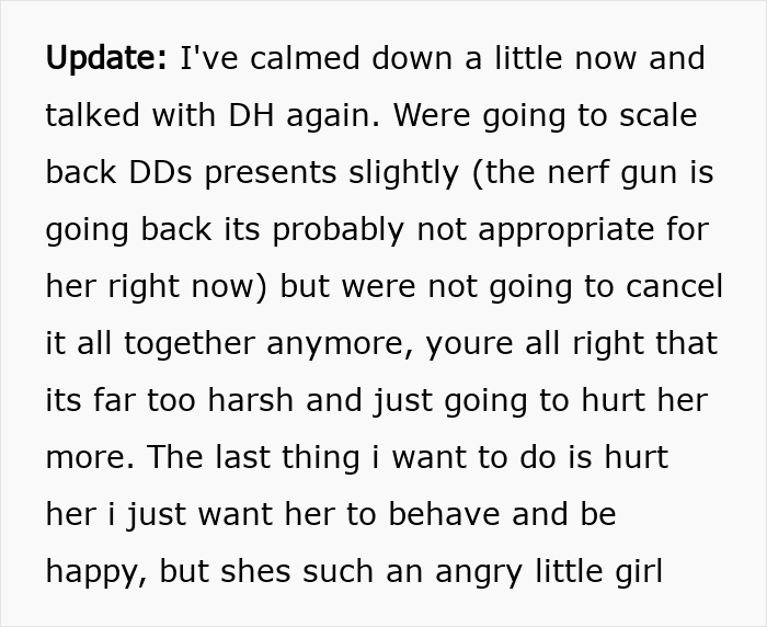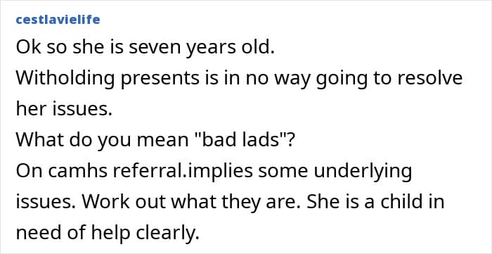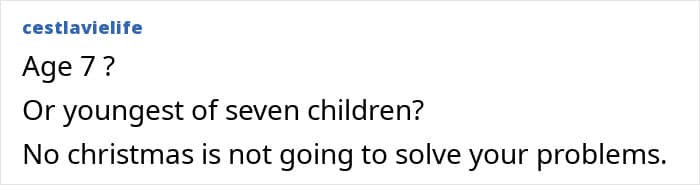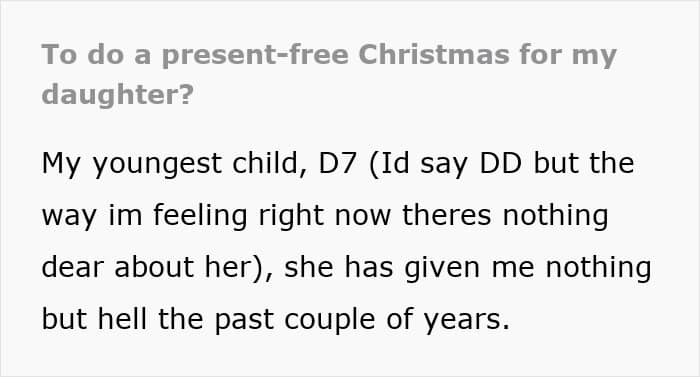 Things got so out of hand, that she decided to punish the child by giving her a miserable Christmas