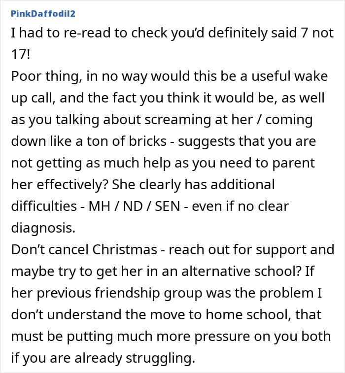 Seemingly left with no other solution, the parents decided to make it a less festive Christmas for their daughter as punishment.